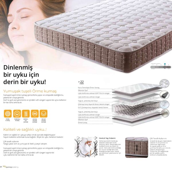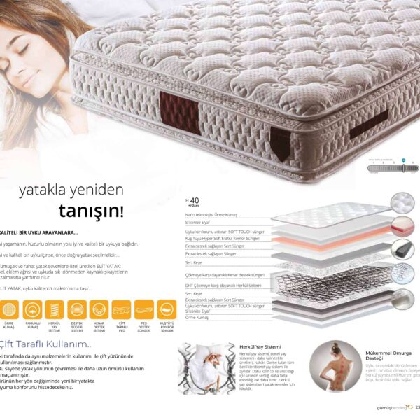 Yatak seçimi, yalnızca uyku kalitenizi değil, yaşam enerjinizi de etkiler. Bu yüzden Gümüş Baza olarak sadece şık ürünler değil, aynı zamanda ergonomik ve sağlık dostu yatak çözümleri geliştiriyoruz. Bel ve omurga desteği sağlayan yataklarımız ile güne zinde başlayın.
