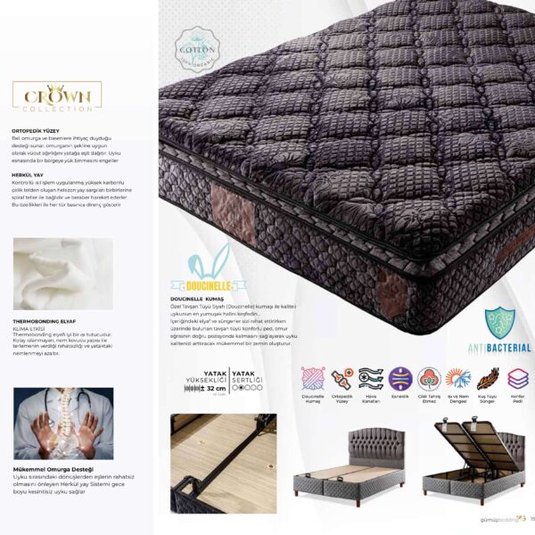 Kategorimizde yer alan tüm ürünler, fonksiyonellik ve estetik görünümün mükemmel birleşimidir. Depolama alanı sunan sandıklı bazalar, farklı ölçülerde ortopedik yataklar ve yatak odanızın havasını tamamen değiştirecek kumaş veya deri başlık seçeneklerimizle hem görsel hem de kullanım anlamında üst düzey çözümler sunuyoruz.